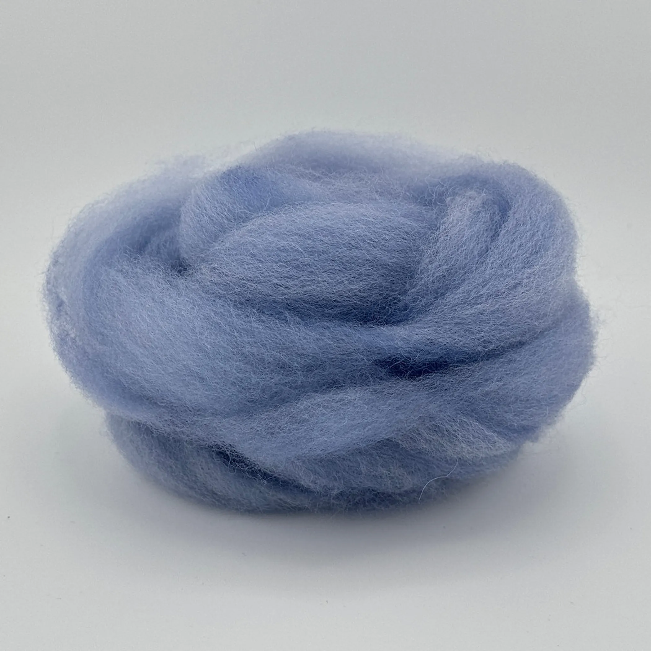 Introducing Blueberry Milk – a luxurious hand-dyed fiber in a soft, creamy blue with subtle hints of lavender. This captivating color is perfect for spinning into yarn, needle felting, or wet felting. Each batch of this premium roving is dyed with professional acid dyes, ensuring vibrant color saturation, outstanding lightfastness, and no bleeding–ideal for all your fiber arts creations.