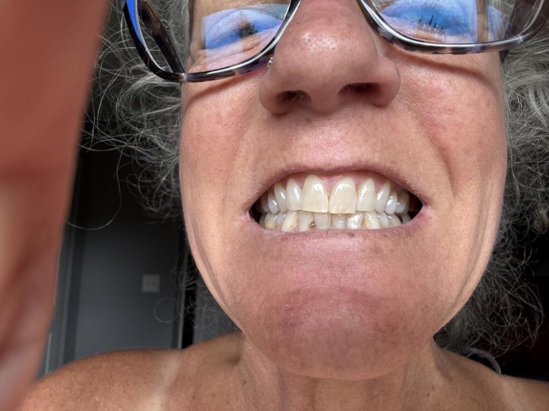 Please forgive the flax seed between my teeth in the before picture.Pictures were taken four days apart, in the same window. Both were taken in the morning. Not sure of the timing though.I’m honestly on the fence about these strips.Let’s look at the pro’s and the con’s, in my humble opinion:Pro’s:* They are easy to peel and place on teeth … well the top teeth at least.* They do whiten. Is it noticeable enough? Read further.Con’s:* They could not be more uncomfortable! The strip will stick to the front of the teeth but the left over that folds behind the teeth does not stay in place! There’s no talking with these things on. Heck … I was afraid to even open my mouth! Everything about these just felt unstable in my mouth!* Had a heck of a time getting the strips to stay in place on my bottom teeth. Saliva is a problem when trying to get these things to stick and stay in place.* There is a taste. That is unavoidable but if we’re talking about pro’s and con’s, I have to mention it. Is it a bad taste? Not really. It’s just a bit sticky, gooey and yucky.* The instructions say to use these for 4 days in a row and then once a week after (although … I could not find those instructions on the box or the packages of strips inside the box. I finally found the instructions here on the Amazon page.) Not a fan of that idea. I suppose once you get past the first week, it’s all about maintenance no matter what kind of whitening product I use.Let’s not forget I’m 62 years of age. My teeth are not young teeth. I love my morning coffee. I do brush and floss daily. I’m no longer a wine drinker.I have used whitening applications I got from the dentist with a formed mouth piece, which I really do prefer over strips however, daily application until achieved whiteness is still the protocol, like it or not.My teeth are a little whiter so that is a win however, I will probably try to find another product I can use in my mouth piece for future whitening. Just really did not enjoy using these strips.